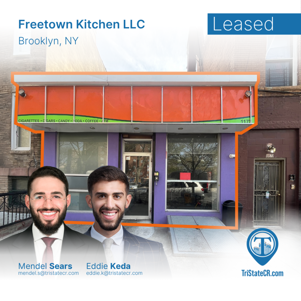 Congratulations to Mendel Sears and Eddie Keda on the leasing of the ground floor at 1172 Park Place in the heart of Crown Heights, Brooklyn, NY 11213—now home to Freetown Kitchen LLC, a vibrant new retail destination bringing flavor and community to the neighborhood. Wishing the new tenant great success in their bright new space!