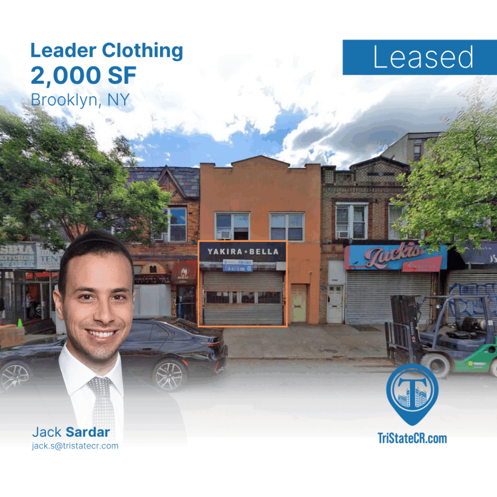 A big congratulations to Jack Sardar on the successful leasing of the first-floor retail space at 1368 Coney Island Avenue in the vibrant Midwood neighborhood of Brooklyn, welcoming Leader Clothing, a kids’ clothing retailer dedicated to providing quality fashion for families and children throughout the community! This 2,000 SF space will serve as a welcoming hub for shoppers, bringing new retail energy and family-focused offerings to the heart of Midwood. Wishing the new tenant tremendous success as they continue to grow and serve Brooklyn’s thriving community!