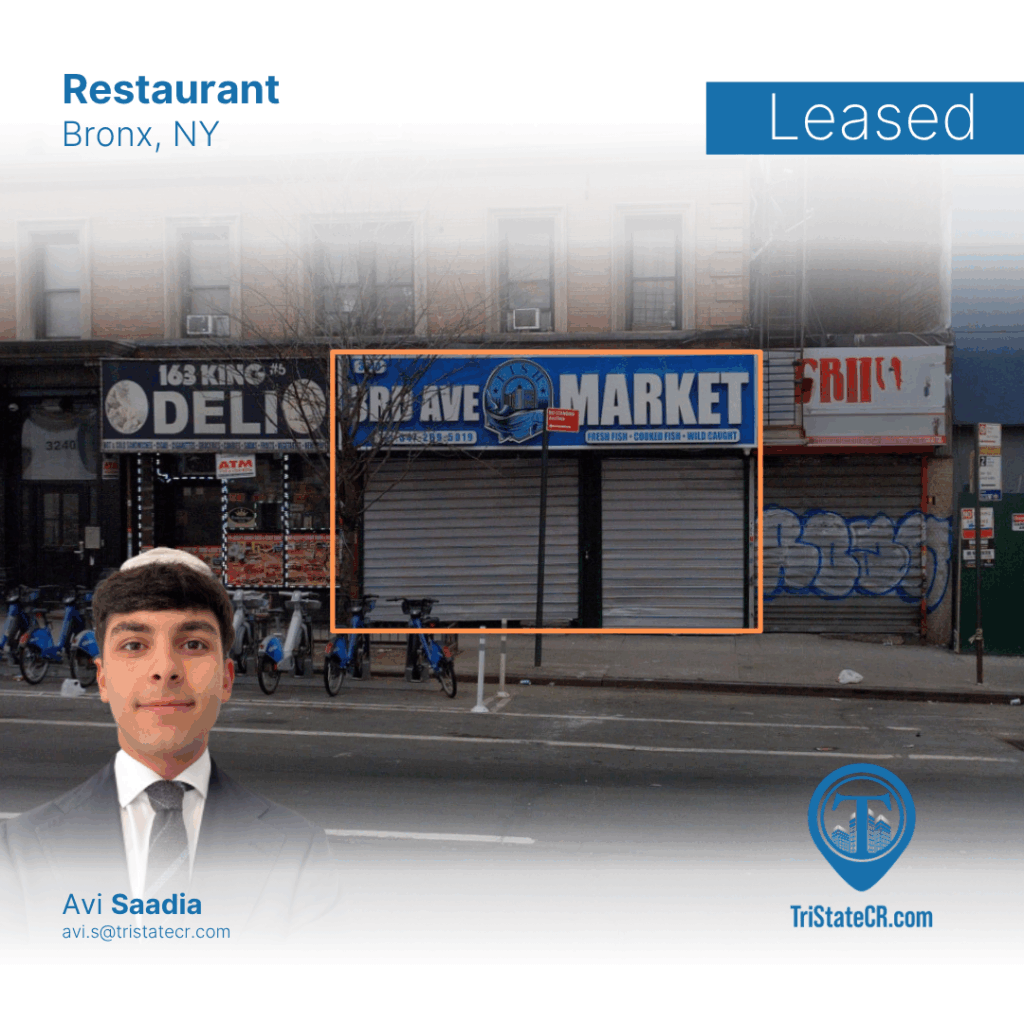 A big congratulations to Avi Saadia on the successful leasing of the ground floor retail space at 3240 3rd Avenue in the vibrant Woodstock neighborhood of the Bronx, welcoming an exciting new Seafood Restaurant that’s set to bring fresh flavors and local charm to the community! This 1,200 SF space will offer a dynamic dining experience in one of the Bronx’s most active corridors. Wishing the new tenant great success as they make their mark in this thriving area!