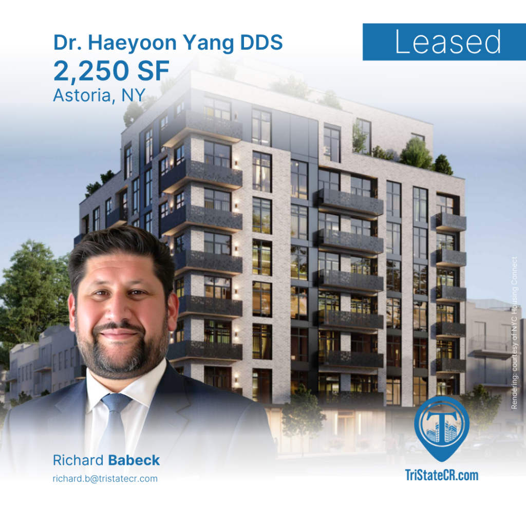 Big news from Astoria – Dutch Kills! Congrats to Richard Babeck on the lease of a 2,250 SF ground floor space at 38-38 32nd Street, now home to Dr. Haeyoon Yang DDS, a new general dentist office. A great addition to this dynamic neighborhood—wishing them much success in their new space!