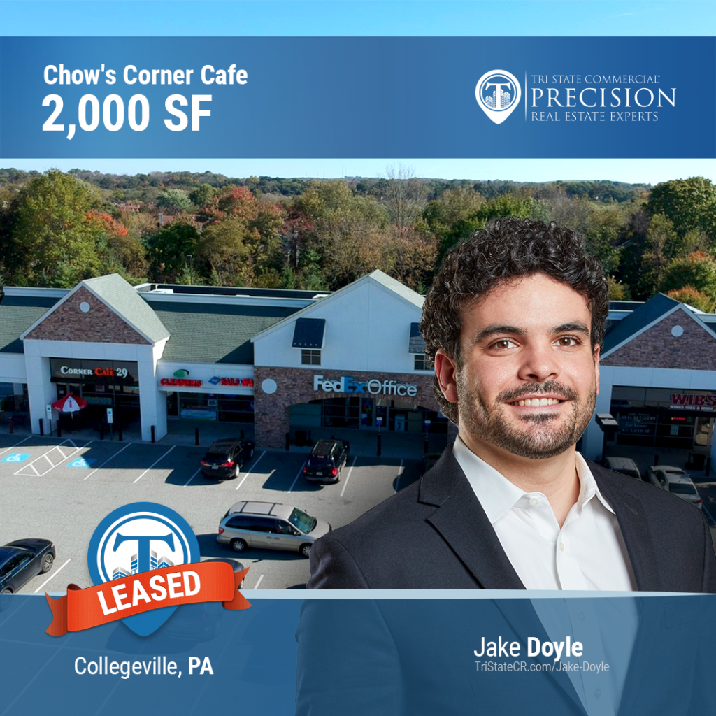 Senior Associate Jake Doyle represented the Landlord in the leasing of 2,000 SF at 1850 S. Collegeville Rd. in Collegeville, PA to Chow’s Corner Cafe.