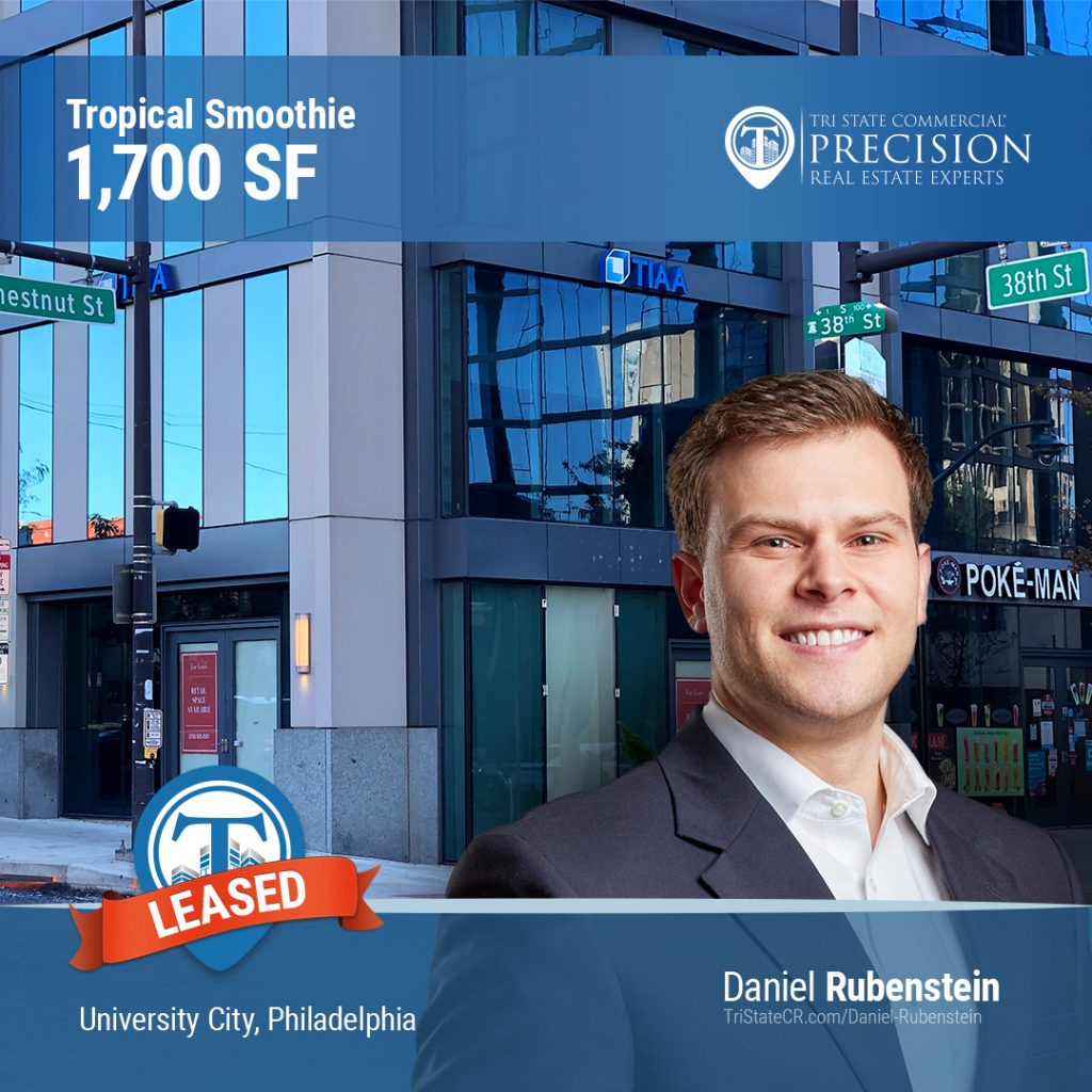 Daniel Rubenstein represented the Landlord in the lease of 1,700 SF to Tropical Smoothie at 3737 Chestnut Street in University City.